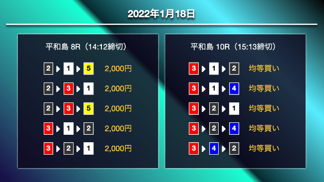1月18日、「平社員」から提供された予想は、平和島8R→平和島10Rの2レースコロガシ。