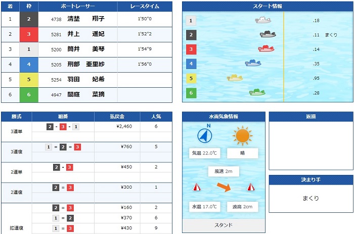 - 【2号艇】:清埜 翔子選手(A1/埼玉)