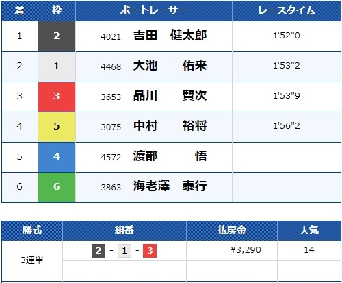 A1級の選手が1着に来ないのは少しビックリしてしまいましたが、「ボートパイレーツ(BOAT PIRATES)」なりの考えがあるのでしょう。