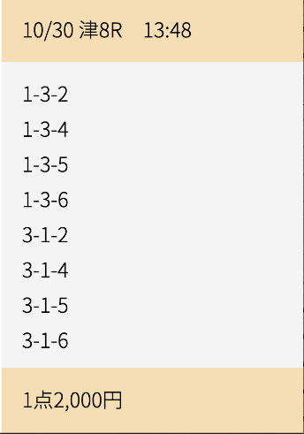 公開された買い目とオッズは以下の通りです。