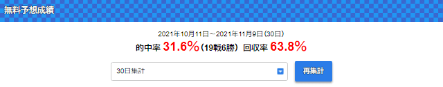 今回の有料予想6日間(11月1日~11月6日)に参加して得た金額は以下の通り。