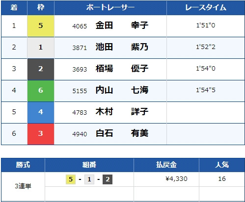 - 【2号艇】:栢場 優子選手(B1/東京)