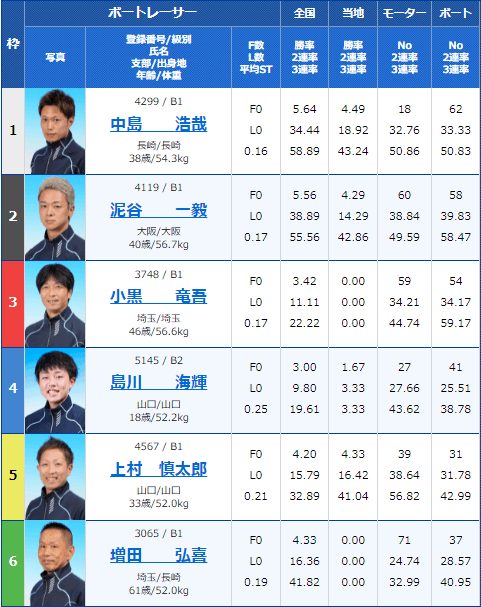 実力的にも下位である、4号艇・松本宏貴選手と5号艇・牧宏次選手はほぼないだろうとの判断だろう、順当な予想だと思う。