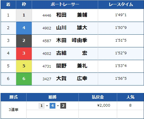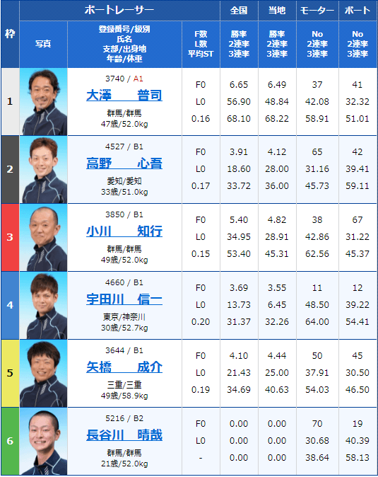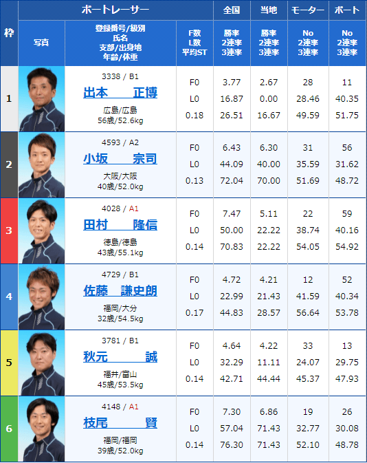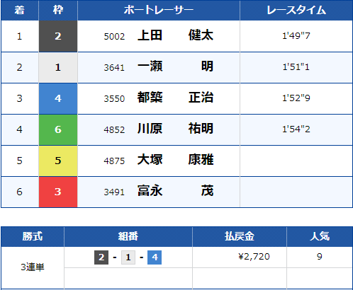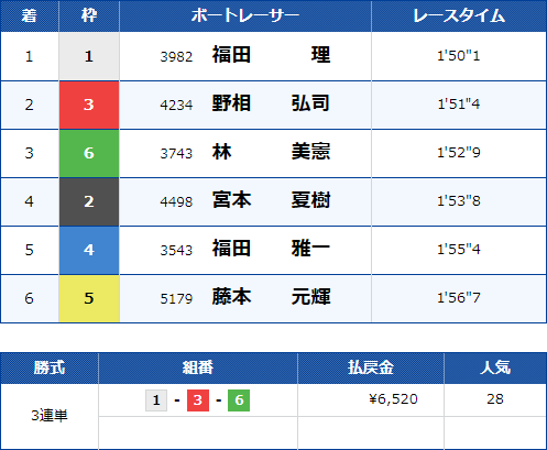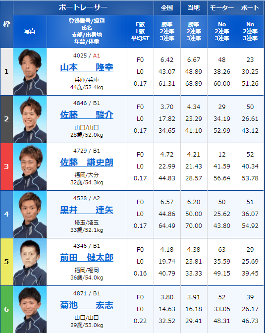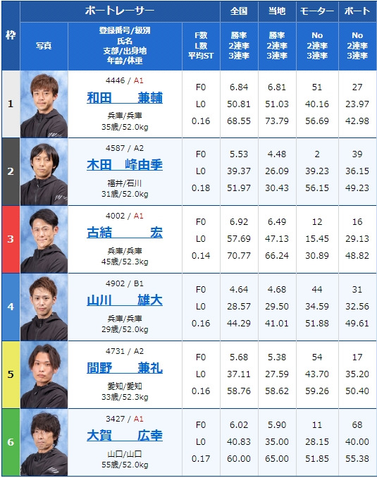 - 【6号艇】:表 憲一選手(A2/福井)