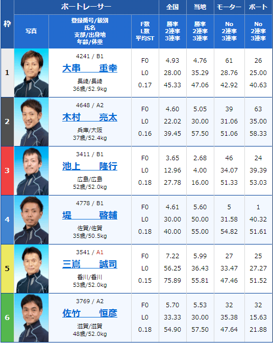- 【1号艇】:香川 颯太選手(B1/滋賀)