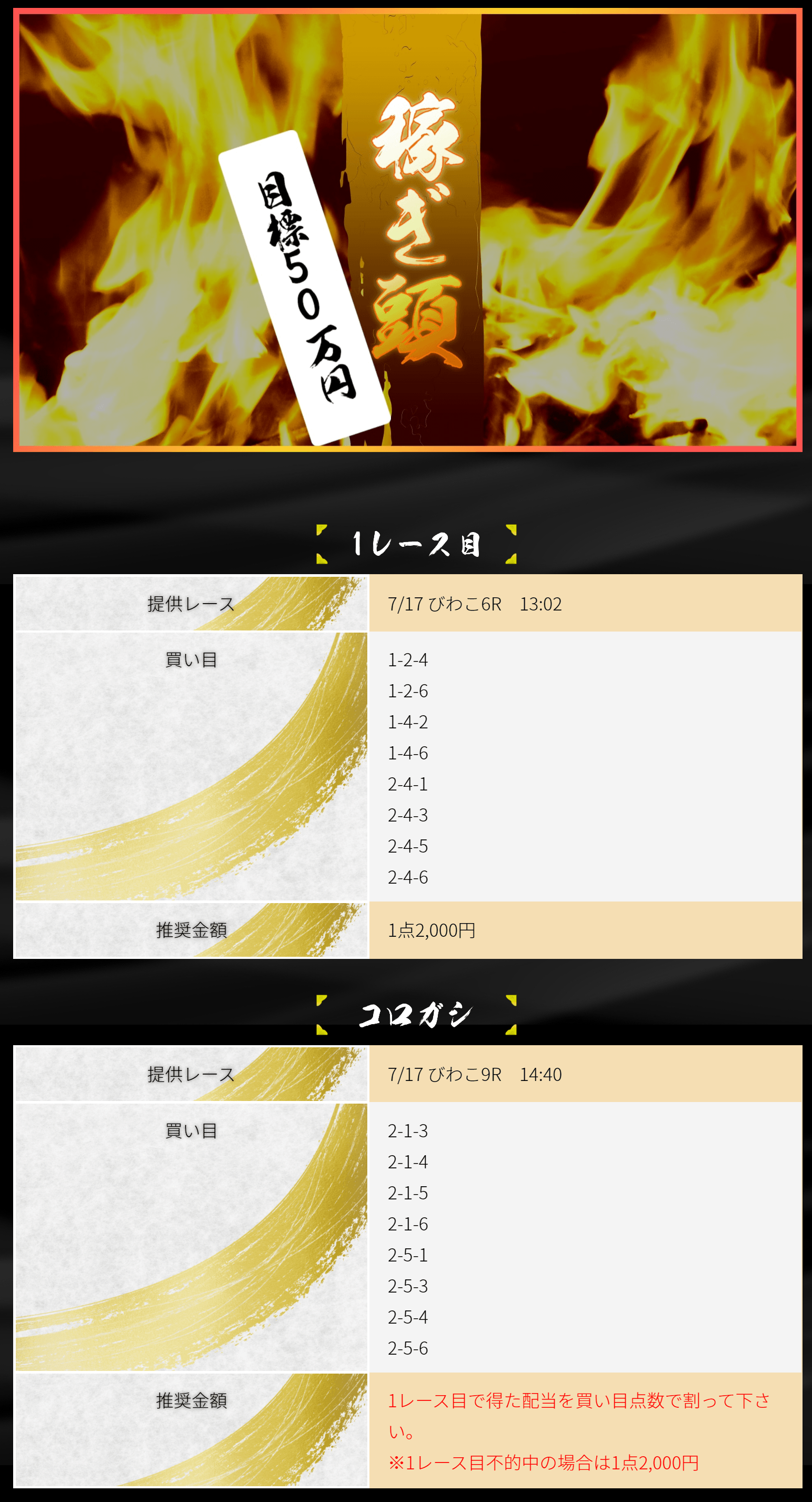 「稼ぎ頭」2レース目の予想内容・結果