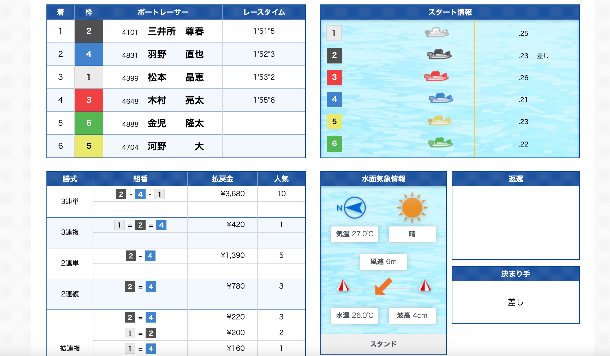 6号艇は勝率が0ということで、予想から外しているようです。