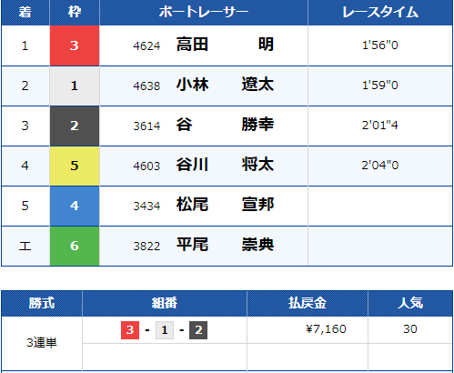 また、3号艇1着はA2級の選手で6号艇を外した場合、最も勝率が高いからでしょう。