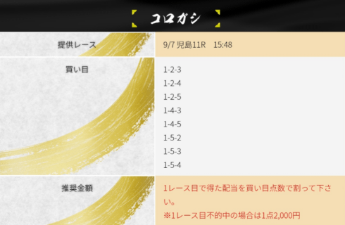 - 提供券種:3連単(コロガシ)