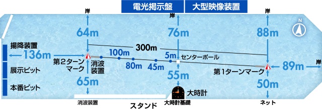 1マークのバック側は87mもあり、これは全競艇場でみても非常に大きいレイアウトと言えます。