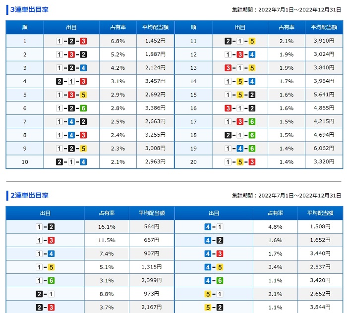 出現しやすい買い目、出目データは?