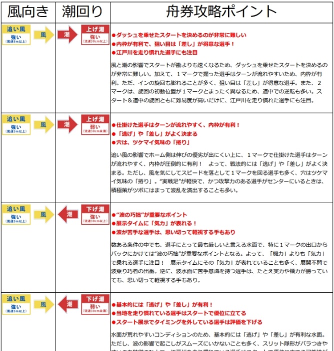 そこで使えるのがボートレース江戸川公式サイトから確認できる「風向きと潮回りの攻略まとめ情報」です!