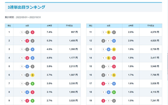 1号艇の1着率は80%ほどというかなり的中させやすいレースとなっています。
