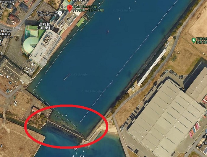 ボートレース下関のコースレイアウトの大きな特徴は、ピットから第2マークまでが非常に遠い点にあります。