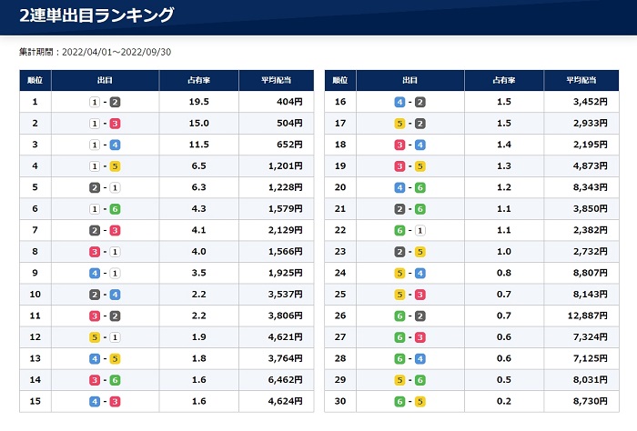 ボートレース住之江(住之江競艇場)の出現しやすい買い目、出目データは?