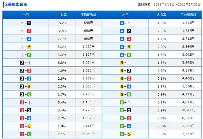 この結果から、まずは2コース軸で舟券を購入するのが得策といえるでしょう!