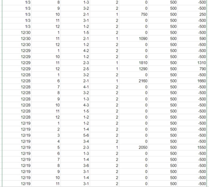 上記から得た情報をもとに、2コース軸の2連単計5点を1,000レースで購入した場合、舟券購入費用は50万円かかってしまいます。