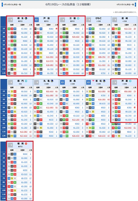 まず最初にやるべきことは、その日の結果一覧から「イン逃げが続いている競艇場を選ぶ」こと。