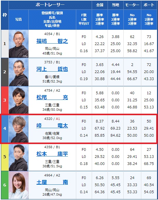 また、勝率が高いなど実力通りに賭けるのではなく、勝率が低めの選手が条件に該当する場合は高配当が狙えるチャンスです!