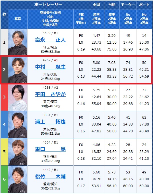レース選びその3「1号艇以外に圧倒的強者がいないか確認