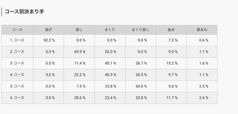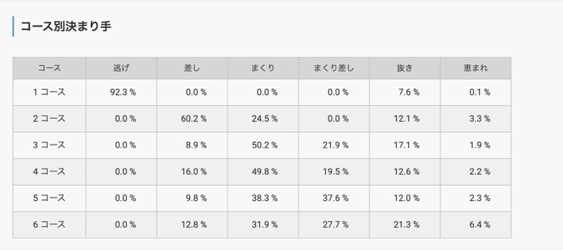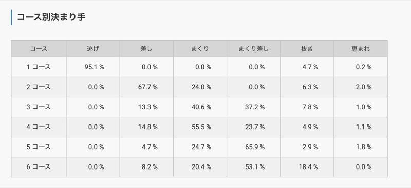 こちらの会場は、2コースから6コースの差しが決まりやすいことがわかります。