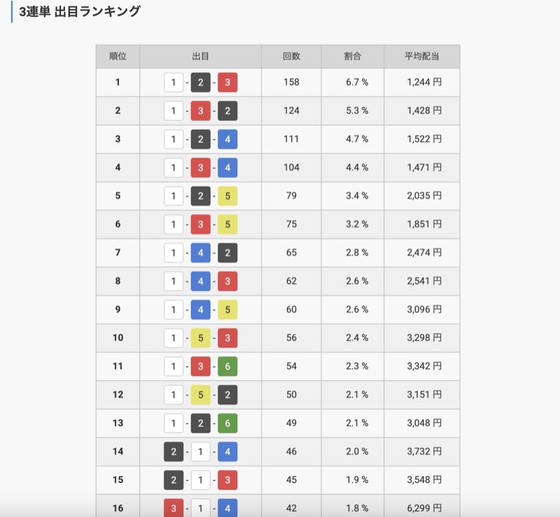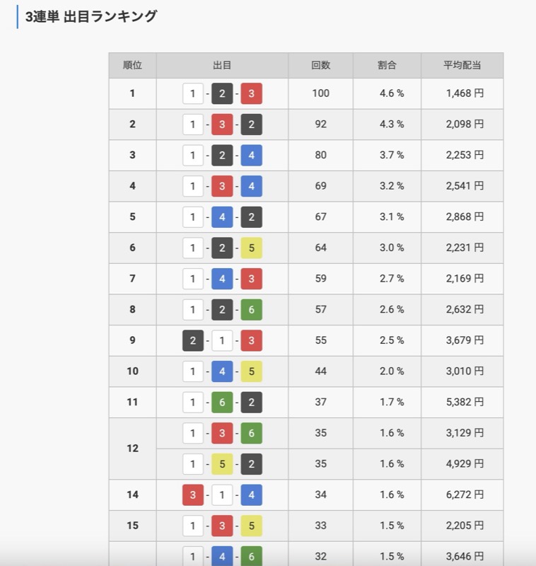 出目ランキングを確認してもわかる通り、こちらの会場は傾向がはっきりしています。
