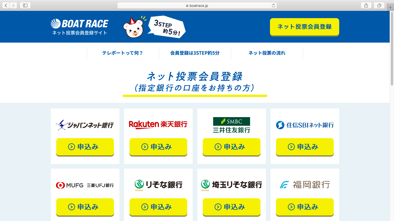 全国のボートレース場の舟券を気軽に買うことができるため、 余計なレースまで買い過ぎてしまうことがデメリットでもあります。テレボートへの会員登録方法