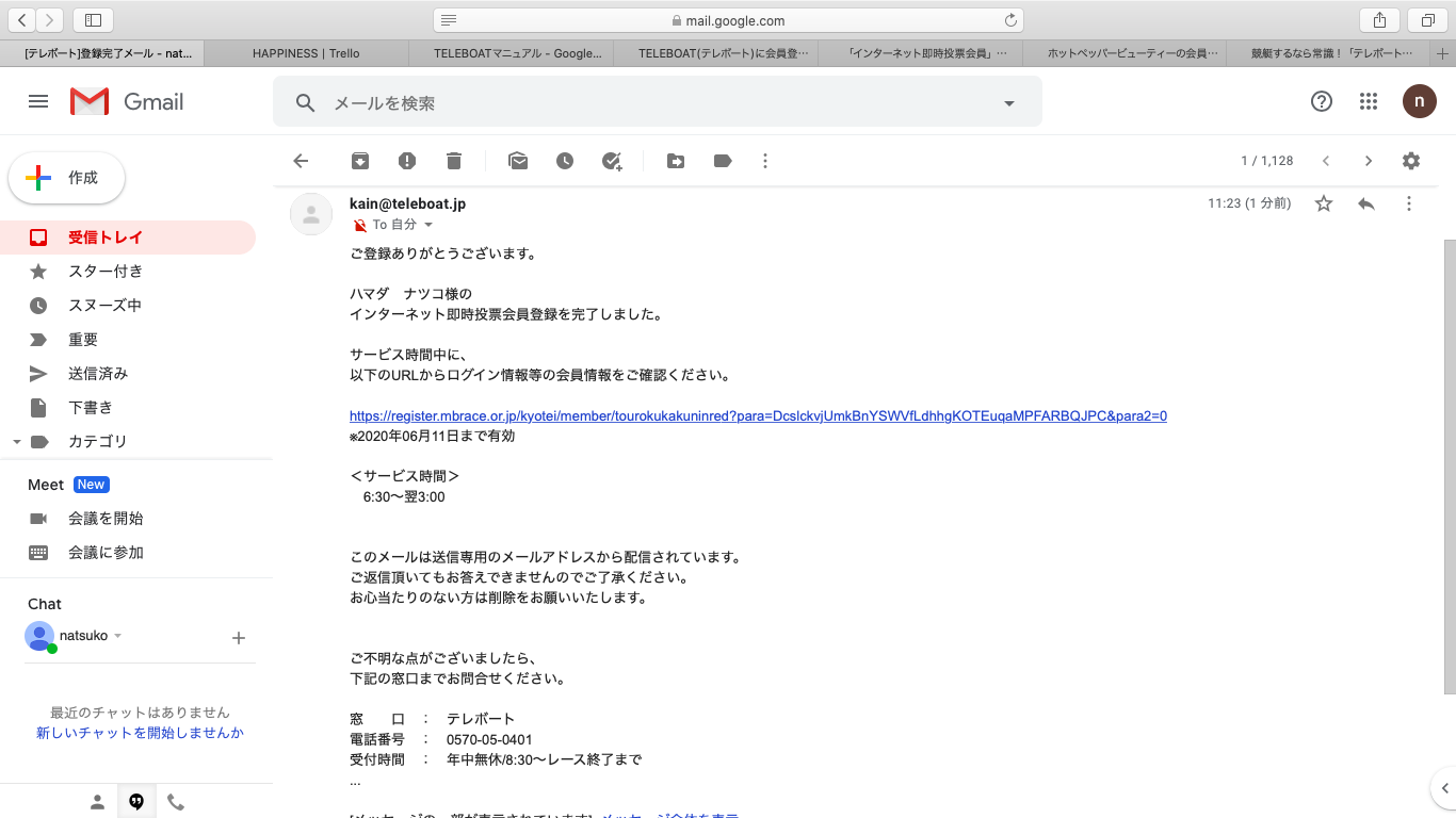 登録が完了すると登録したメールアドレスに自動的に登録完了メールが送信されますので確認してみてください。