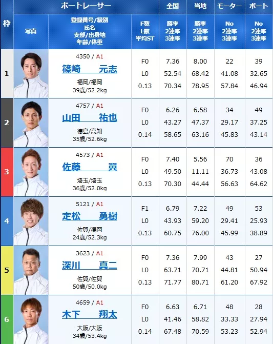 - 篠崎元志⇒1号艇の位置取りが勝率、平均STを活かせる可能性