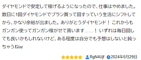 ダイヤモンドで安定して稼げるようになったので、仕事はやめました。