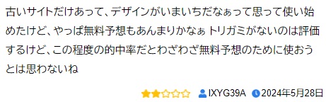 トリガミがないのは評価するけど、この程度の的中率だとわざわざ無料予想のために使おうとは思わないね