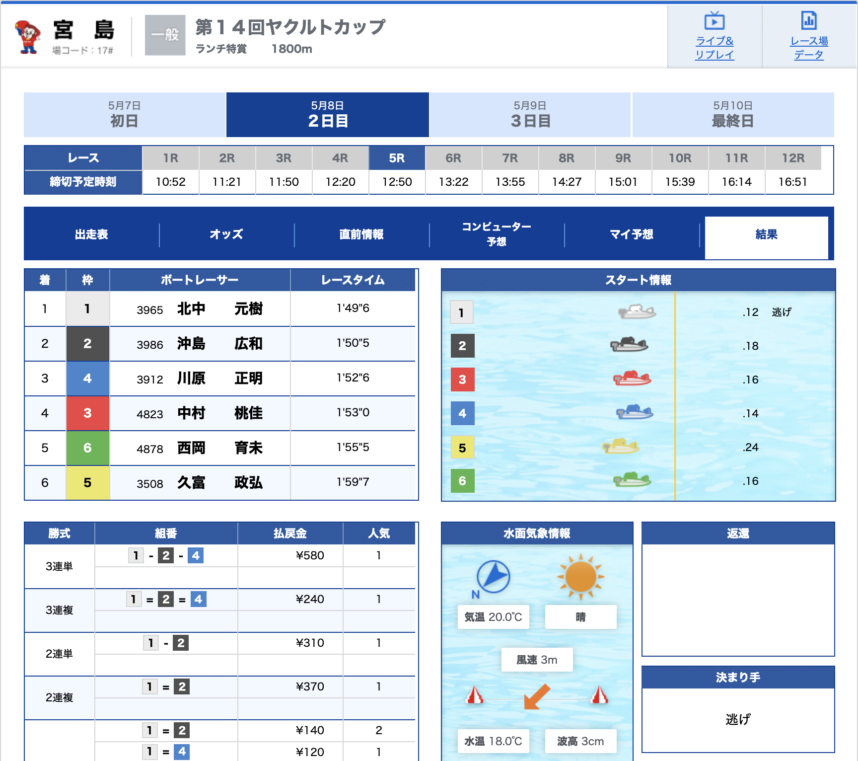 - 【2号艇】:宗行 治哉選手(A1/広島)