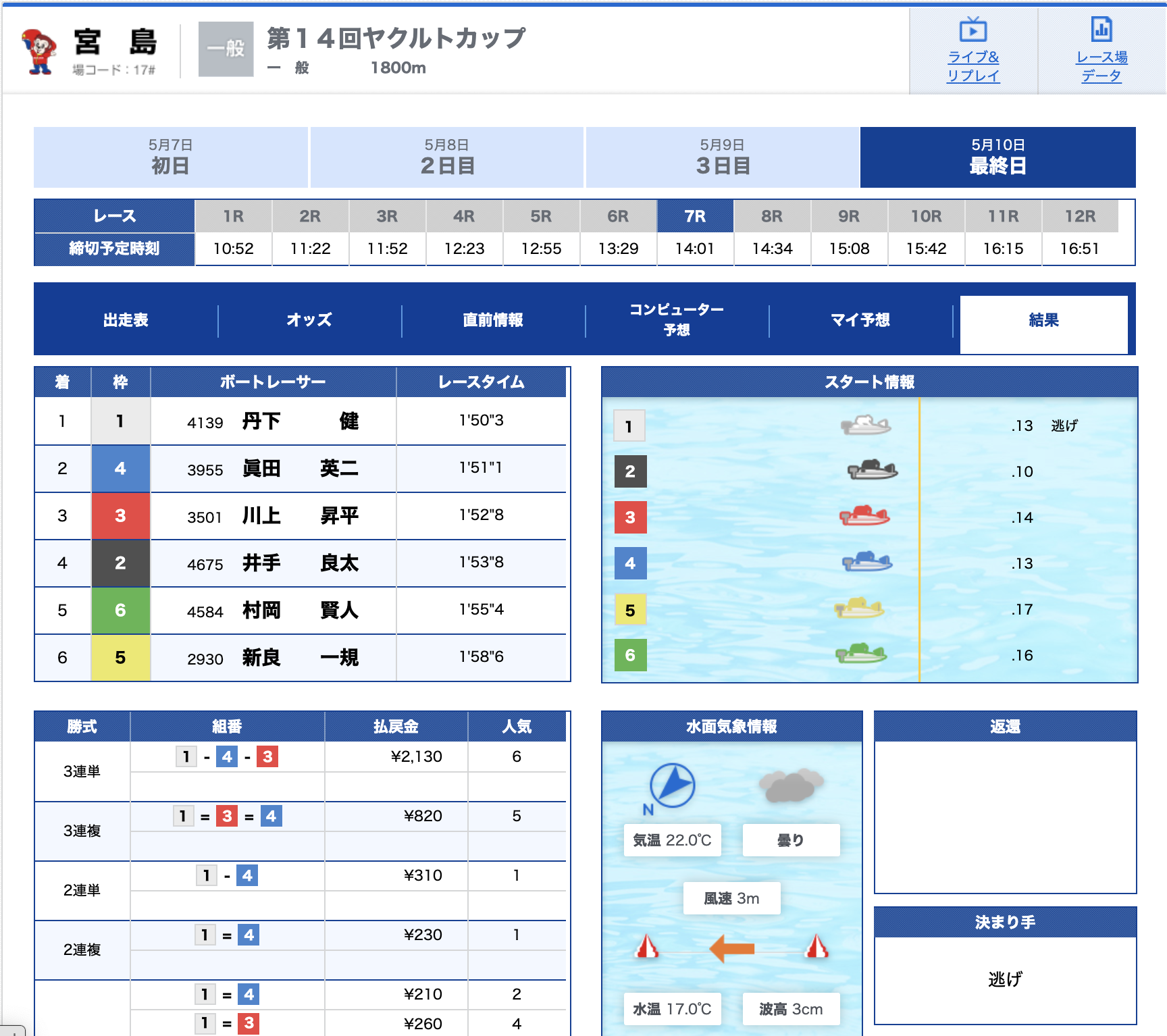展開を突いた4号艇下河選手が予想通りの2着!
