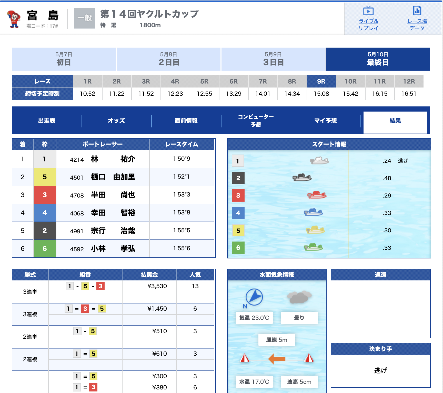- 【5号艇】:三原 司選手(B1/福岡)